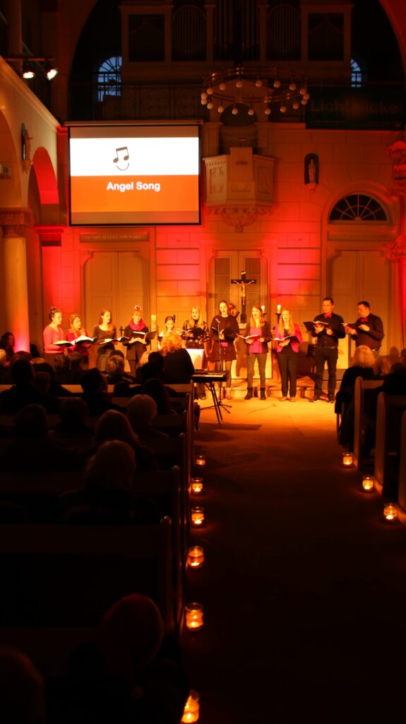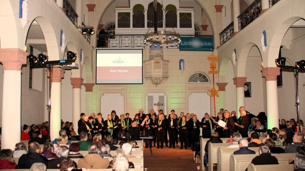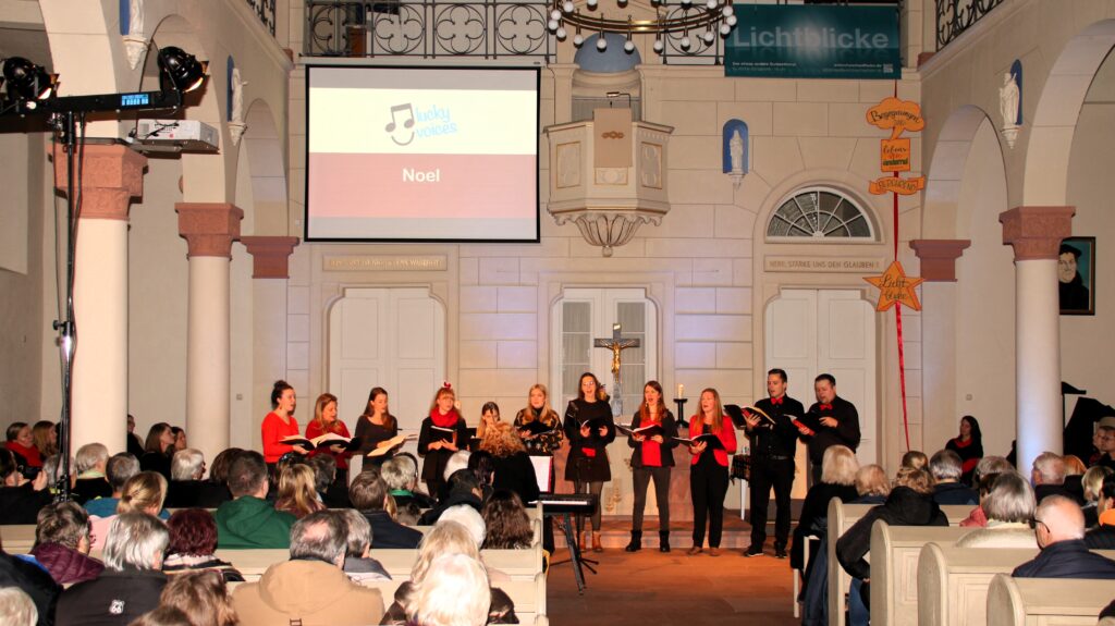 Die Sängervereinigung Schaafheim lud am vergangenen Sonntag zu einem gesanglichen und vorweihnachtlichen Spektakel in die evangelische Kirche ein. Passend zum 2. Advent fand dort ein Adventskonzert statt, bei dem die verschiedenen Chöre des Vereins ihre in den letzten Monaten gelernten Weihnachtssongs zum Besten gaben. Nach einem Grußwort in der fast vollbesetzten Kirche durch die Pfarrerin Christiane Seresse und für den Verein durch Christoph Winter, machte der gründungs- als auch alterstechnisch jüngste Spross des Vereins den Auftakt: die ‚KlangKids‘ unter der Leitung von Anne Rosewsky. Mit den Liedern „So bin nur ich“, „Es wird Zeit“, „Das geht doch nicht“ und „Lichterkinder“ zeigten sie, dass man die kindliche Vorfreude auf Weihnachten auch gesanglich an die älteren Generationen weitergeben kann. Besonders beeindruckend hierbei waren auch die Solisten, die schon in so jungem Alter selbstbewusst, melodisch und textsicher auftraten. Gemeinsam mit ‚Chorios‘ sangen sie zudem als ihr Schlusslied noch den Weihnachtsklassiker schlechthin: „In der Weihnachtsbäckerei“. Den nächsten Block des Abends bediente ‚Chorios‘ unter der Leitung von Christina Krapp. Der Chor steht seit seiner Gründung für modernes Liedgut und hohen musikalischen Anspruch. Mit den Liedern „Christmas Canon of Peace“, „That‘s Christmas to me“, „Fairytale of New York“ und „Spät dran“ setzte man auf eine Mischung aus modernen Liedern, besinnlichen Melodien und Acapella-Stücken, welche auch genau das reguläre Portfolio des Chors abbildeten. Den dritten Block des Abends bildeten die ‚Lucky Voices‘, ebenfalls unter der Leitung von Christina Krapp. Die ‚Lucky Voices‘ sind ein junger Chor, der vor elf Jahren gegründet wurde und sich primär an Jugendliche zwischen 12 und 18 Jahren richtet. Mit den Liedern „Angel Song“, „Noel“ und dem „Weihnachtskekse-Swing“ lösten sie sowohl tränende Augen vor Rührung, als auch kleine Lacher im Publikum aus. Das Ende des Konzerts läutete der gemischte Chor ‚Akzente‘, unter der Leitung von Marvin Gauger-Schmidt ein. Mit den Liedern „Ave Verum“, „Wieder naht der heilige Stern“, „Es ist ein Ros entsprungen“ und „Frohe Weihnachten“ setzte man hier auf ein eher klassisches und besinnliches, gar geistliches Repertoire. Falls Sie sich jetzt wundern, wo denn der fünfte Chor des Vereins bleibt: „MenOnly“ durfte sich nach der fantastischen Musikrevue „Harte Männerwelt“ im November nun eine kleine Auszeit gönnen. Nach dem letzten gemeinsamen Lied „Tochter Zion“ durch die Gemeinde mit der Orgel, stand es den Besucherinnen und Besuchern frei, den Abend noch im Sängerheim der Sängervereinigung bei einem wärmenden Glühwein und hausgemachter Suppe ausklingen zu lassen. Die ‚KlangKids‘ bekamen im Anschluss noch Besuch vom Nikolaus, der ihnen eine Kleinigkeit schenkte und ihnen die Geschichte vom Heiligen Nikolaus als Bischof von Myra näherbrachte. Die Sängervereinigung Schaafheim dankt allen Anwesenden, die diesen Abend mit den Chören verbracht haben. Sollten Sie das Adventskonzert verpasst haben, haben Sie am 13. Dezember nochmal die Möglichkeit die Chöre ‚Chorios‘ und ‚Akzente‘ um 17 Uhr auf dem Schaafheimer Weihnachtsmarkt zu erleben. Insbesondere ‚Akzente‘ lädt hierbei alle Anwesenden zum gemeinsamen Singen ein. Textblätter werden hierzu verteilt. Die Sängervereinigung freut sich stets über neue Sängerinnen und Sänger in jeder Altersklasse. Sollten Sie Interesse am Singen haben oder sich einfach mal ausprobieren wollen, besuchen Sie gerne eine unserer Proben in der „Alte Schulgasse 3“ in Schaafheim.